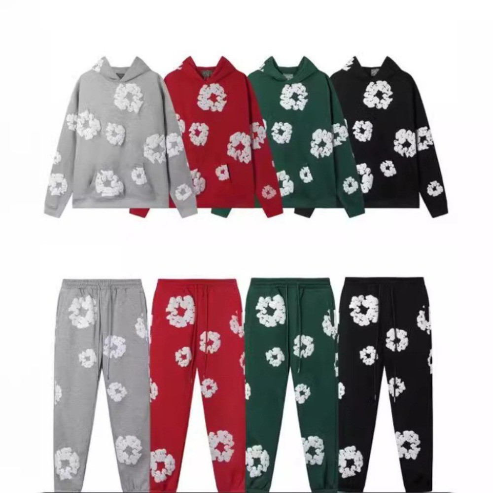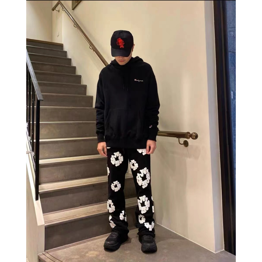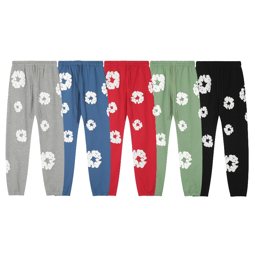 DENIM TEARS 2023 Nova Linha Principal Calças De Banho De Algodão American High Street 3D Espuma Impressão Bordada Casal Vintage Puro Calça De Perna Reta