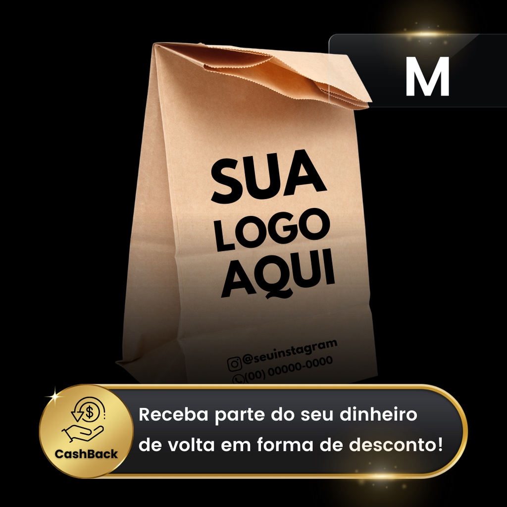 Kit Saco Kraft Para Delivery M Personalizado Com A Sua Logo 100/250/500 Unidades Várias Cores