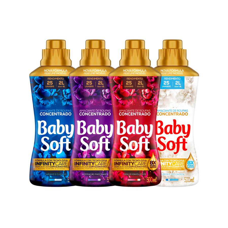 Kit com 4 Amaciantes Concentrado Baby Soft de 500ML - Todas as fragrâncias para você provar e escolher a sua favorita.