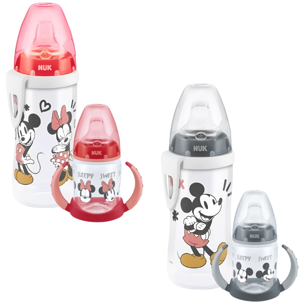 Kit 2 Copos Transição Nuk Disney Baby Mamadeira para Copo Fase 2 Bico de Silicone Air System Mickey e Minnie Controle de Temperatura