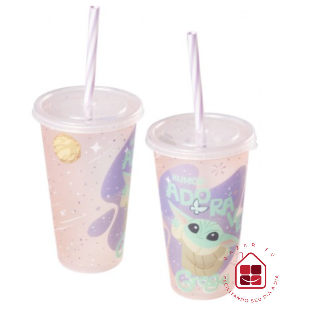 Copo Refri Com Tampa e Canudo Star Wars Baby Yoda 500mL