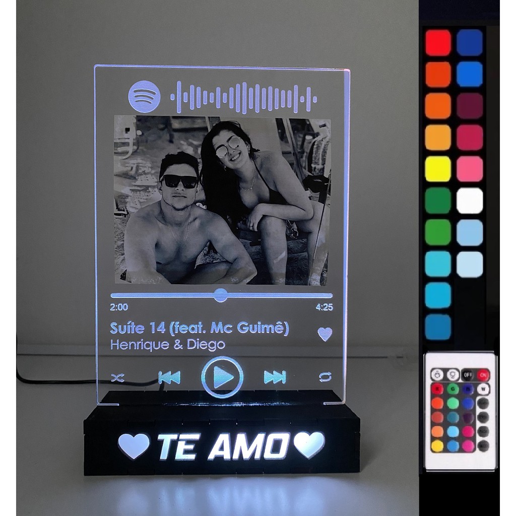 Luminária Spotify Casal Namorados Amizade Foto LED RGB Personalizada Com Nome