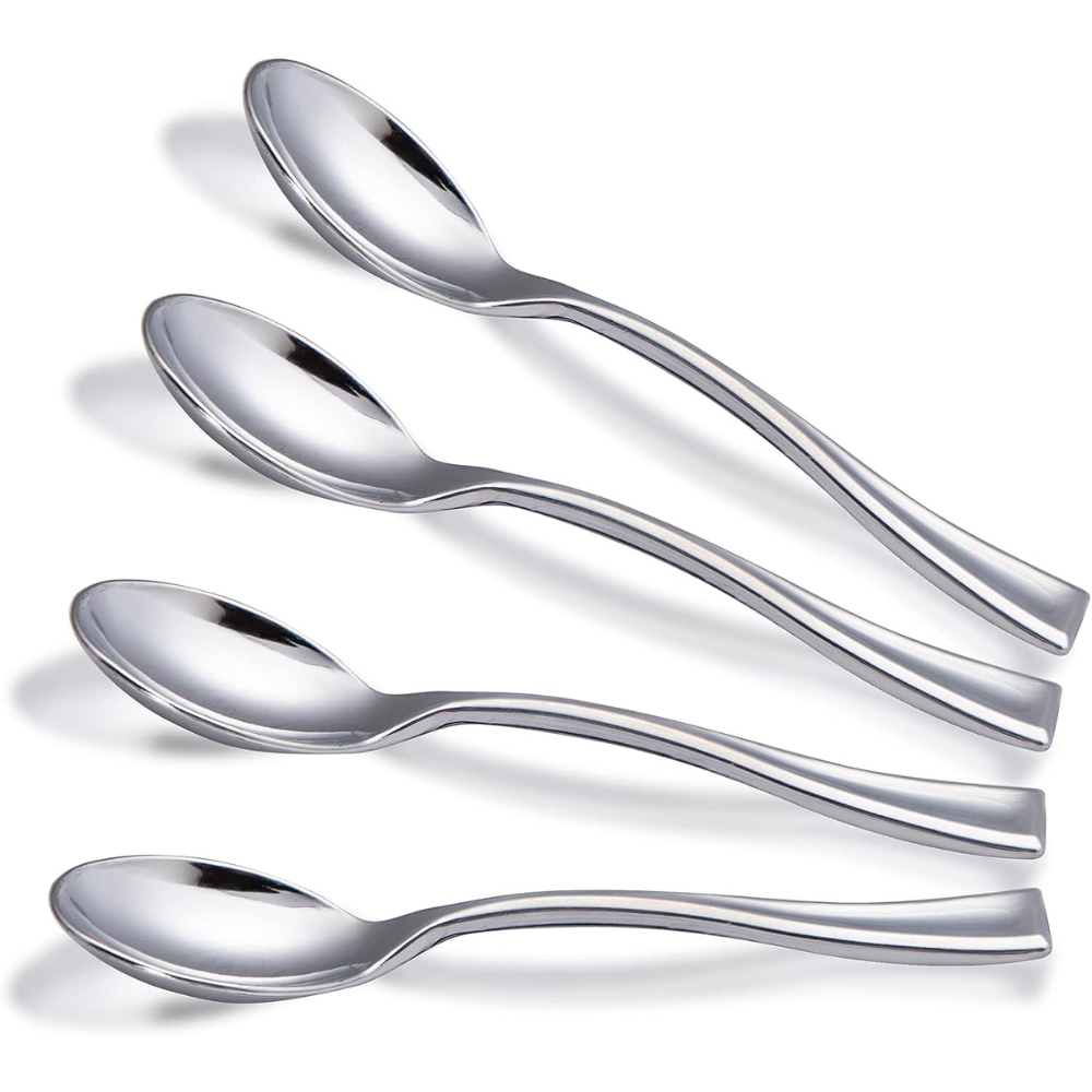 Kit 40 Mini Colheres 10cm Descartáveis de Luxo em Plástico - Prata - Ovo de Pascoa