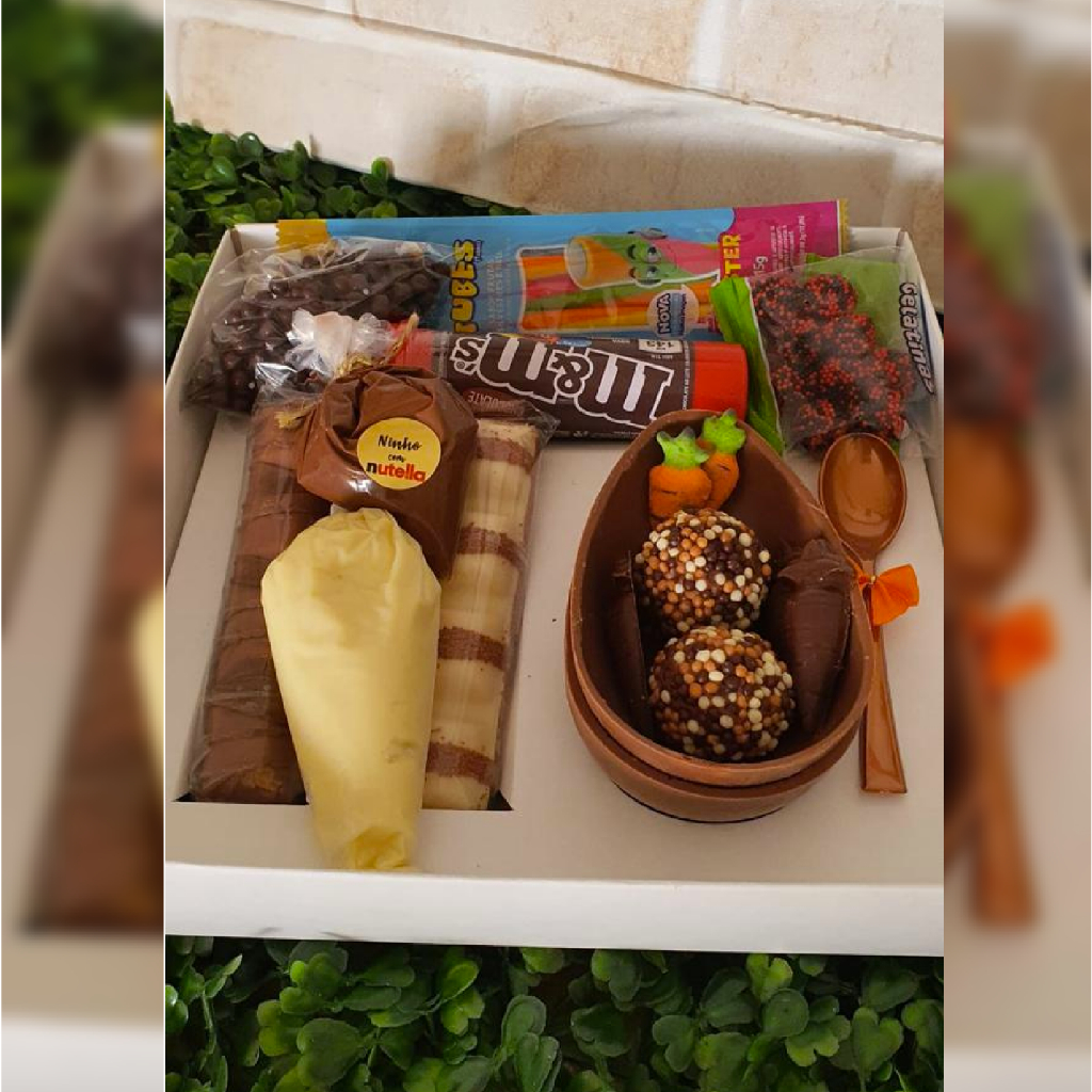 MINI KIT CONFEITEIRO DE PASCOA OVO DE CHOCOLATE 150 GRAMAS PERSONAGENS COM 10 UNIDADES A SUA ESCOLHA