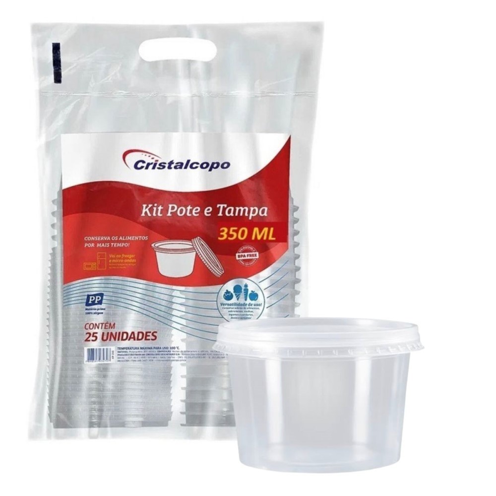 100un Pote Redondo 350ml com Tampa - Kit Pote Redondo Descartável