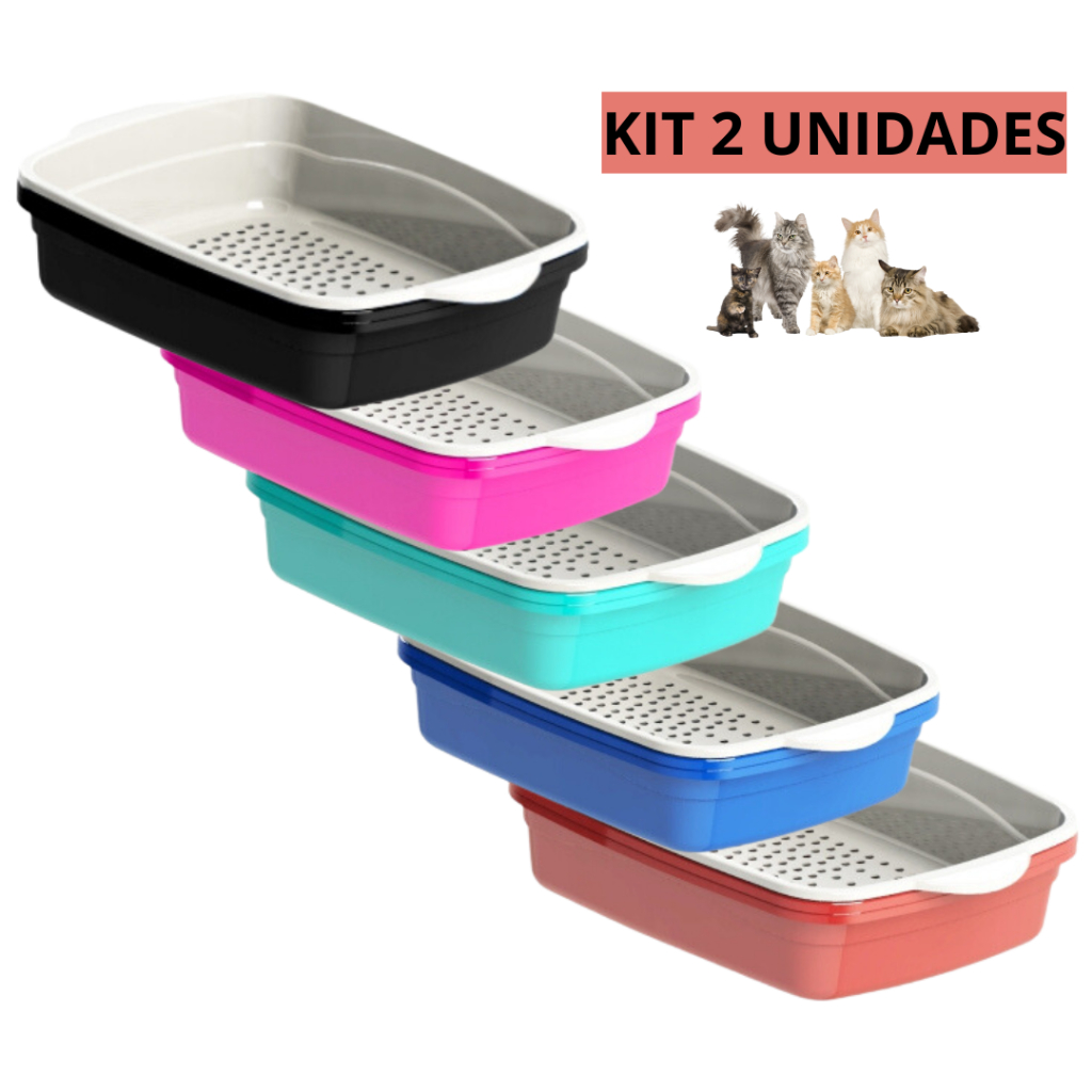 Kit 2 Caixa De Areia Para Gatos Com Bandeja Higiênica