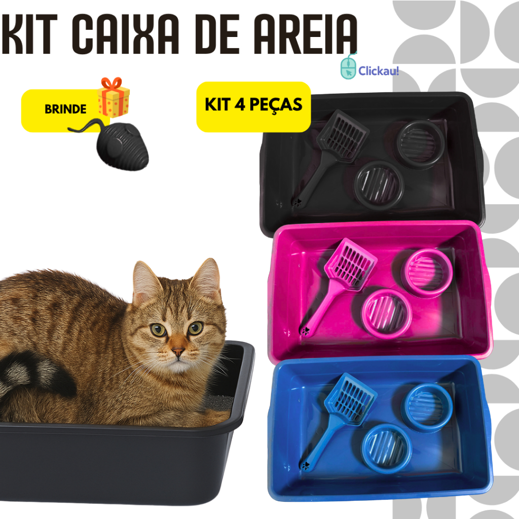 Kit Caixa de Areia para Gatos Bandeja Comedouro e Pá Higiênica Pet Mais Rastelo
