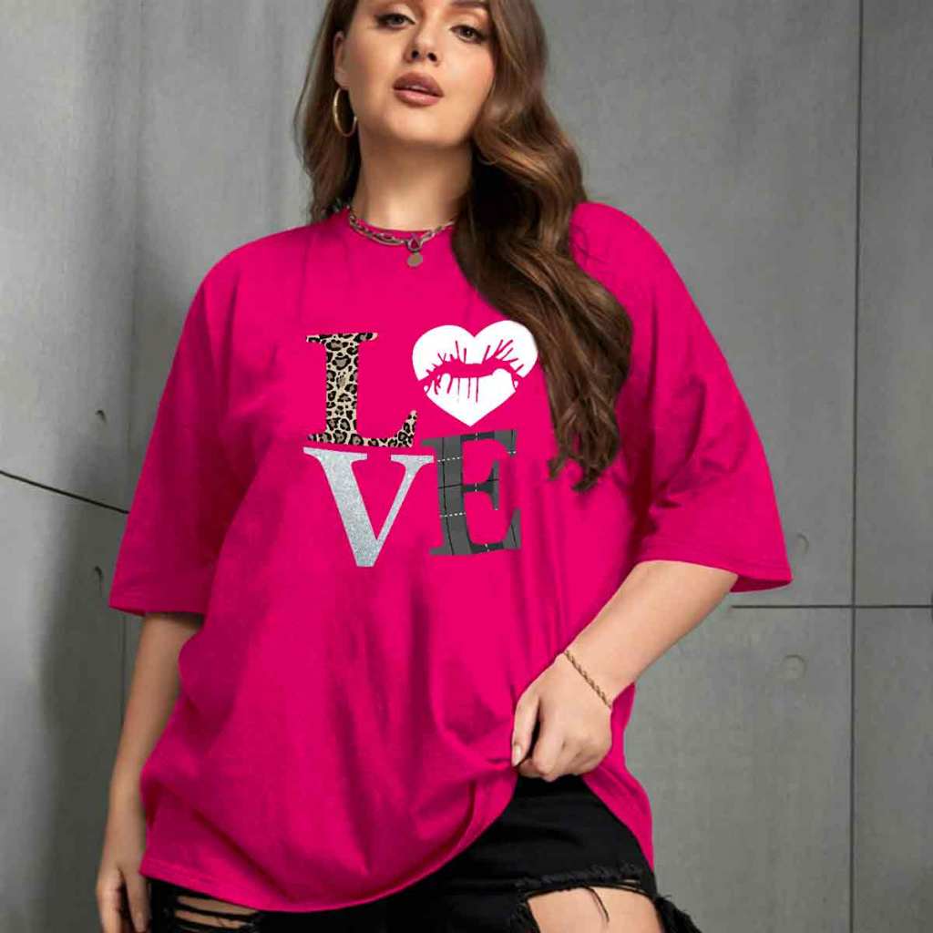 T Shirt Streetwear Unissex Casual Academia Blusa Personalizada Bordada Camisa Tecido Confortável Estampa Love Animal Print Onça Brilho Coração Boca Xadrez Beijo Camiseta Oversized Plus Size Feminina Estilosa Moda Gringa