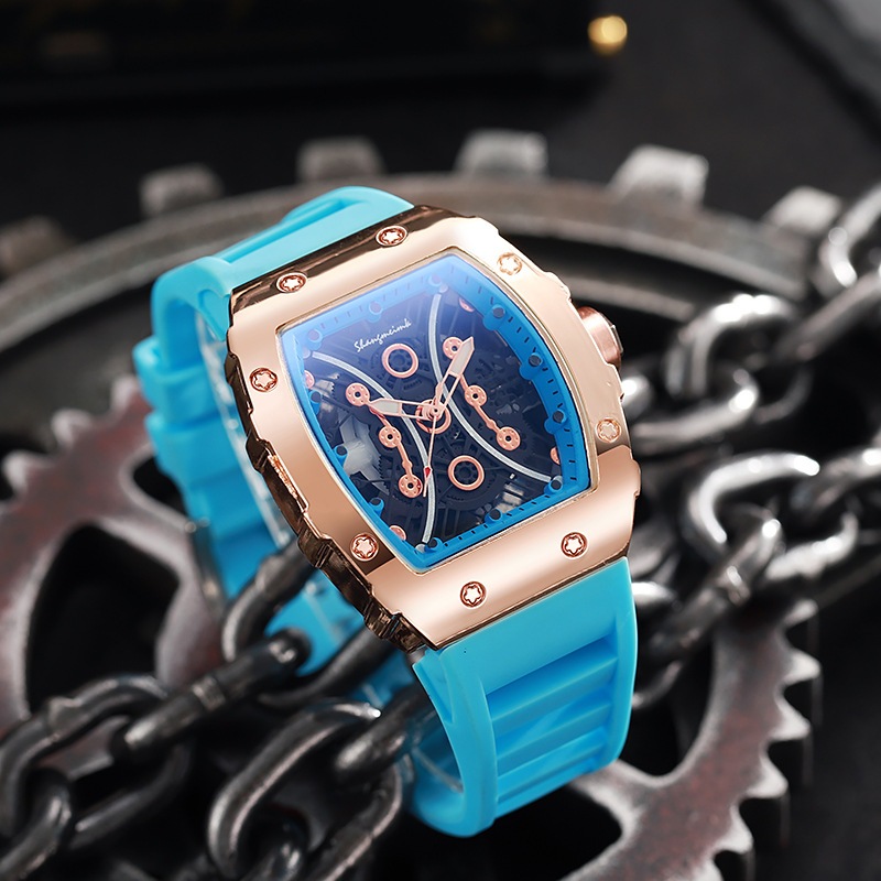Relógio De Negócios Quartzo Presente Em Forma De Barril Esportes Masculino Luminoso Moda Masculina Calendário Oco Alta Qualidade Popular