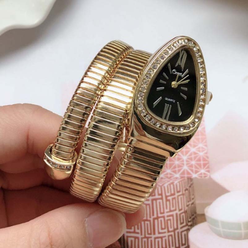 Novo Relógio Mulher Cobra Em Forma De Animal Ouro Quartzo Diamante Pulseira Moda