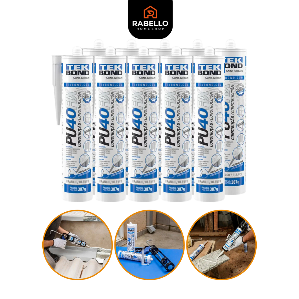 Adesivo Silicone PU40 Selante Cola Poliuretano Construção Kit Branco Fix Profissional Tek Bond 387g