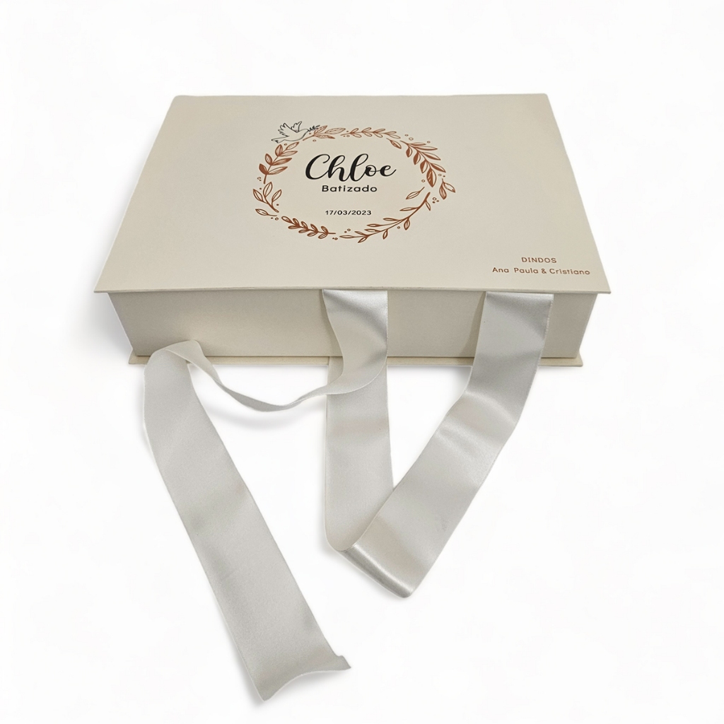 Caixa de Presente Modelo Livro Personalizada Com Mensagem ou Logomarca Cartonada Aniversario Casamento Padrinhos 15 Anos Namorados Fechamento com Fita de Cetim