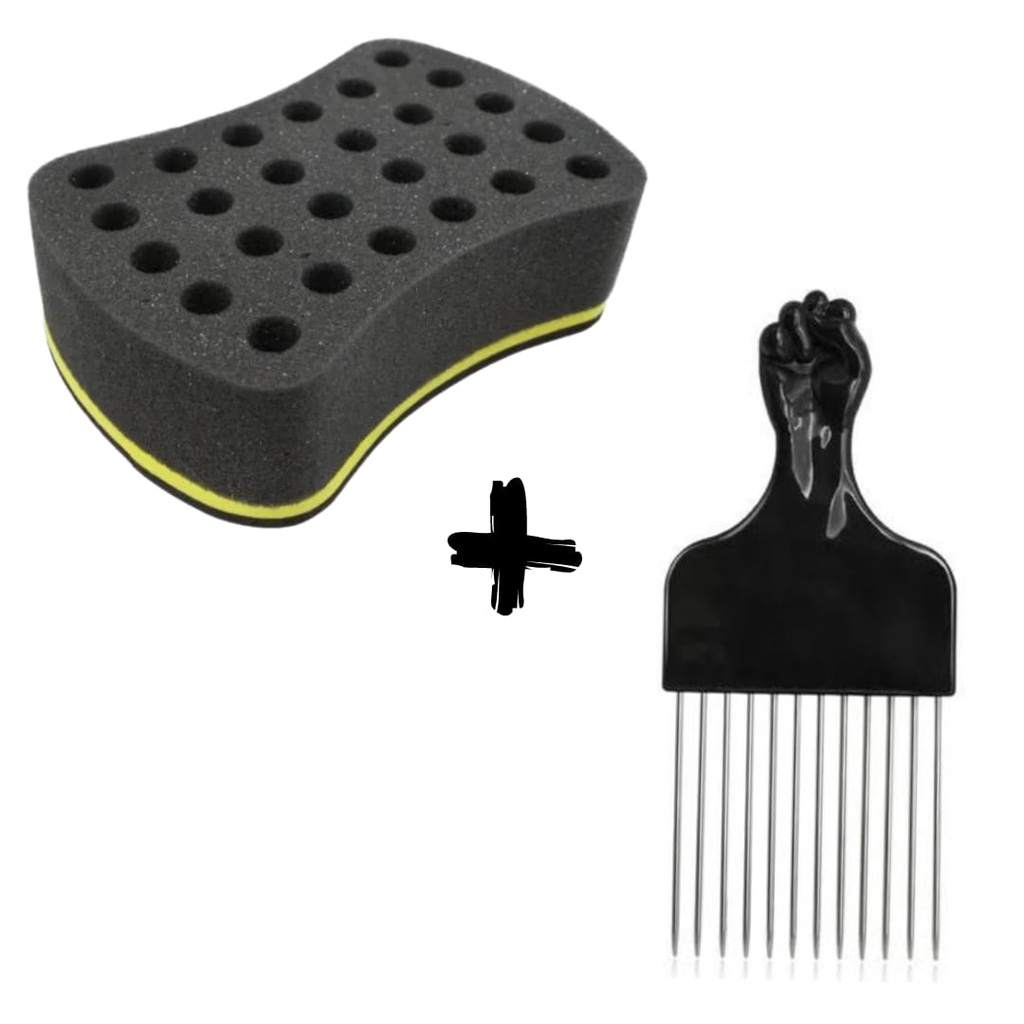 Esponja Nudred Bucha Enrolar Cabelo + Pente Afro de aço
