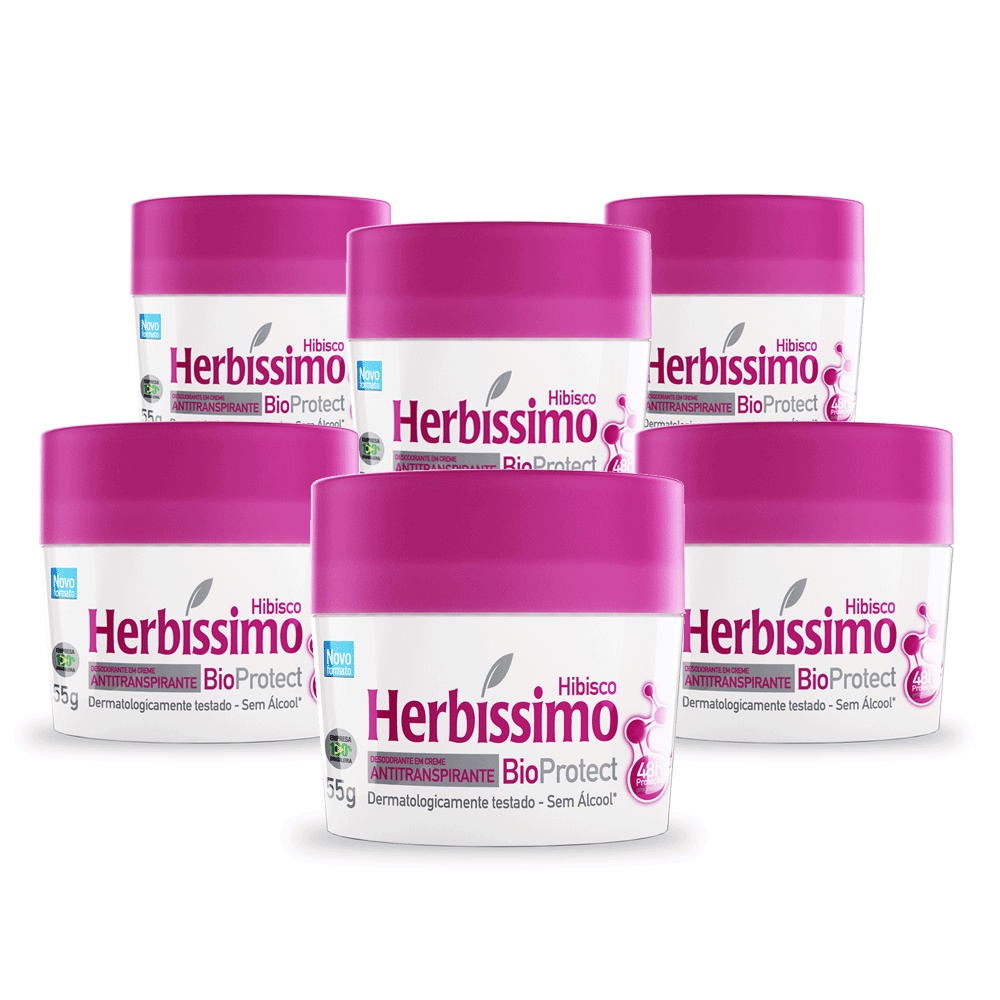 Kit Desodorante Herbíssimo Creme Antitranspirante Bioprotect Hibisco 55G com 6 unidades