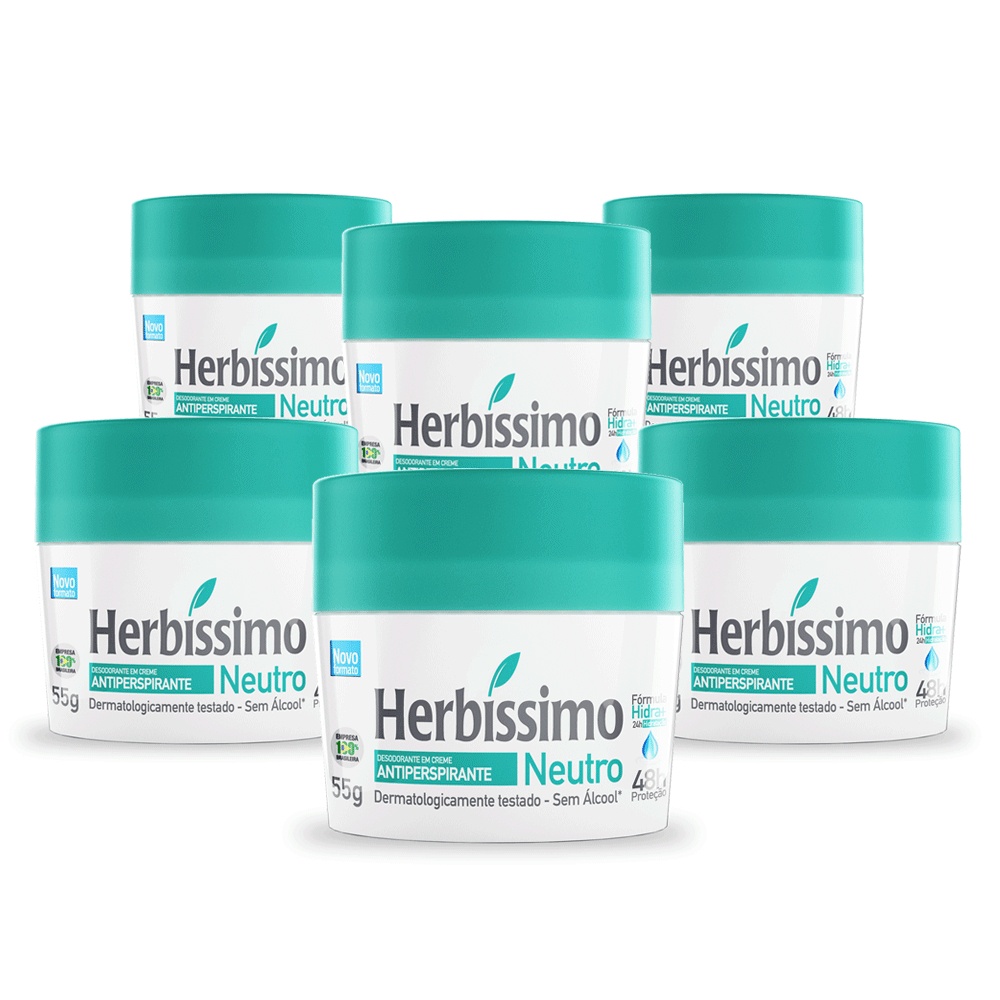Kit Desodorante Creme Antitranspirante Neutro Herbissimo 55G com 6 unidades