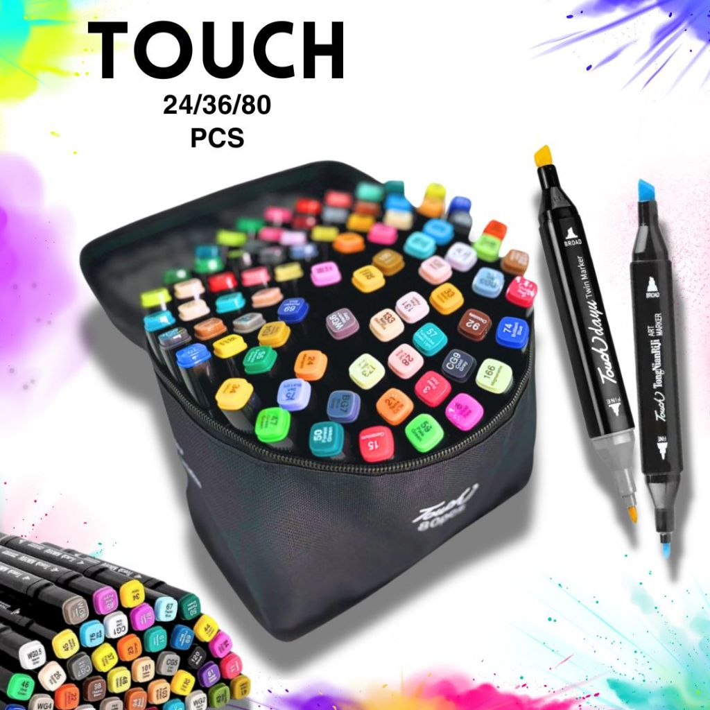 Kit 24 / 36 / 80 Peças Caneta Marcadores TOUCH Com Ponta Dupla Tampa Com NÚMERO DE CORES Conjunto Pintura Artística