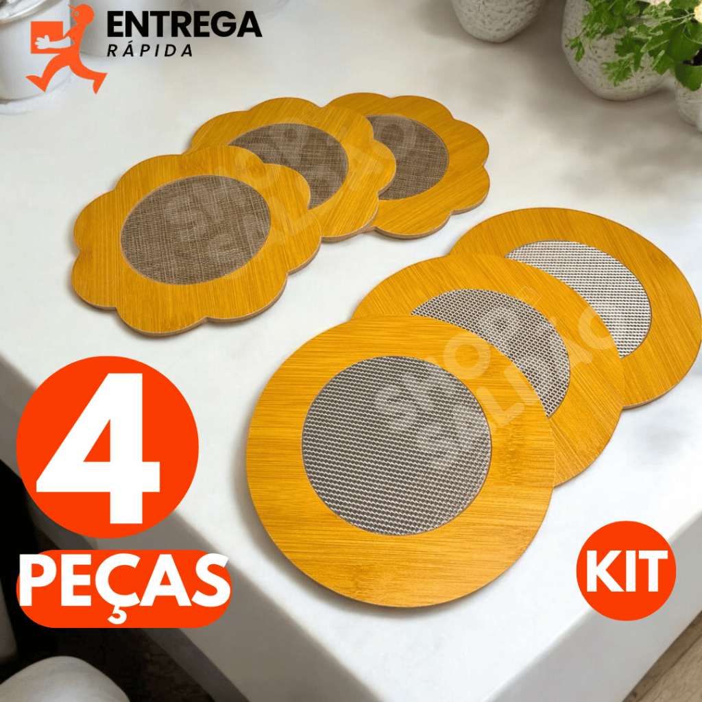 Kit 4 Descanso de Panela MDF 16,5cm Descanso de Panela Quente Suplá Mesa Posta Porta Panela