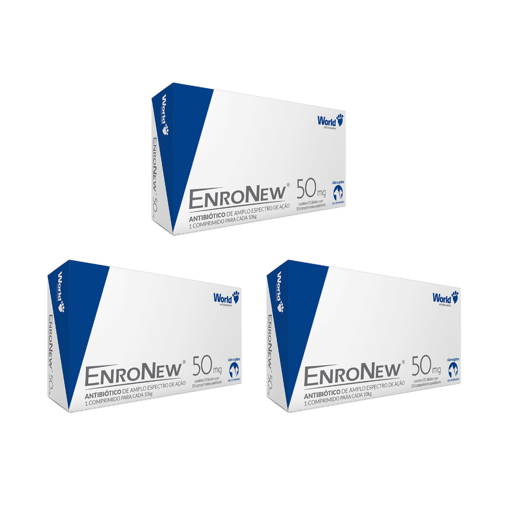 Kit 3 EnroNew Cartucho Cães Gatos 50mg 10 Comprimidos World