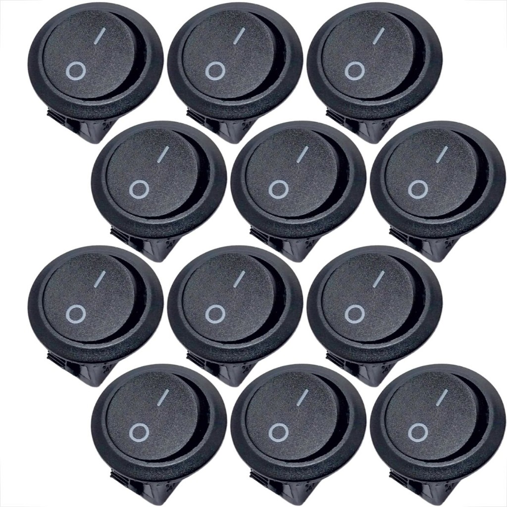 KIT 12 CHAVES BOTÃO TIC TAC REDONDA PRETA ON/OFF LIGA DESLIGA 2 POSIÇÕES 2 TERMINAIS 10A