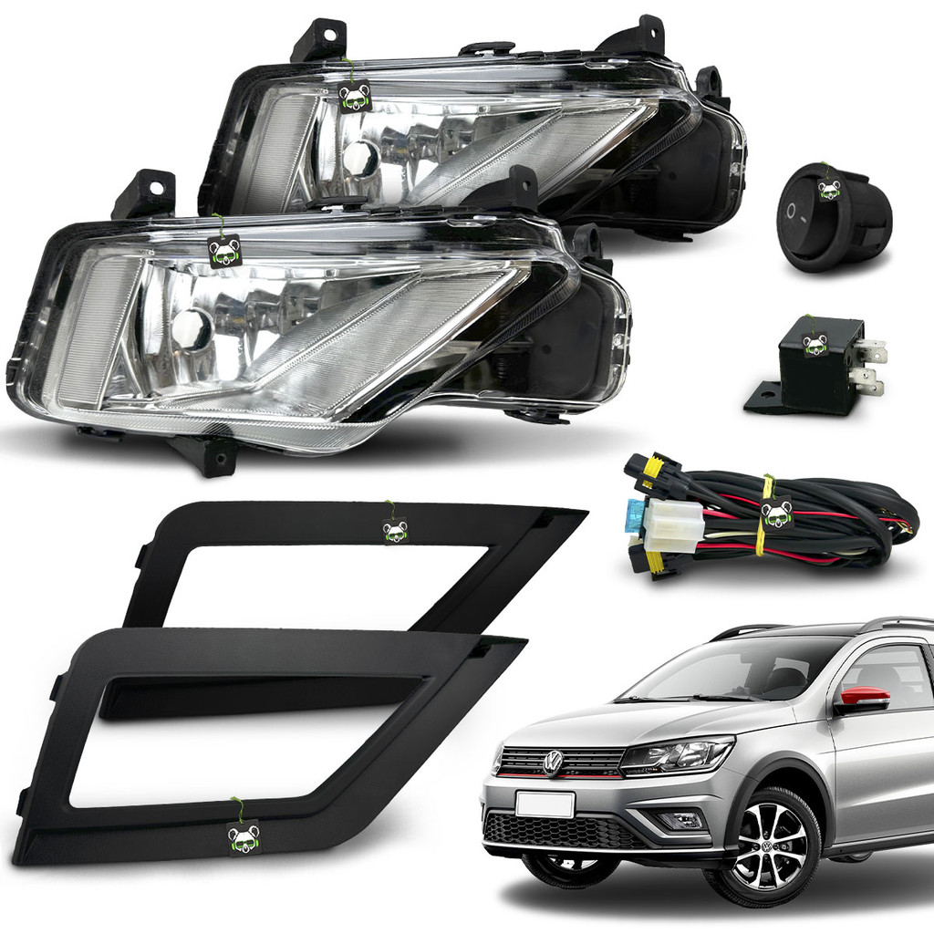 Kit Farol Auxiliar Milha Saveiro G7 2017 2018 2019 2020 2021 2022 2023 2024 Moldura Preta Botao Tic Tac