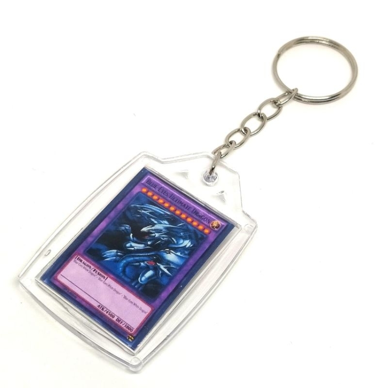 Chaveiro Carta Dragão De Três Cabeças E Olhos Azuis Frente e Verso Yu-Gi-Oh Acrílico Anime / Série / Geek / Desenho