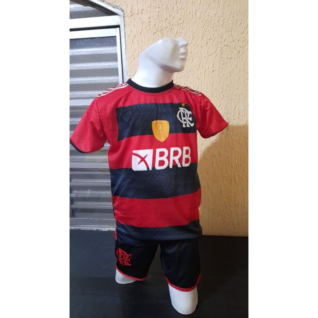 Kit Camisa estampada Mengo Vermelho e Preto, Conjunto infantil futebol , Flamengo Tradicional 2023 !!