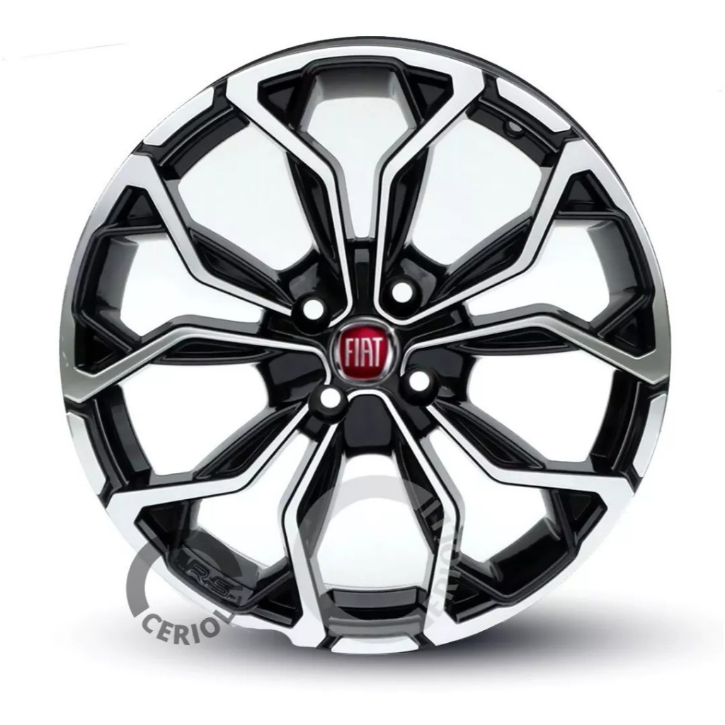 Kit 4 Rodas Aro 14 Fiat Cronos 4x98 Preto Diamantado Uno Palio Strada Bicos de Brinde S03