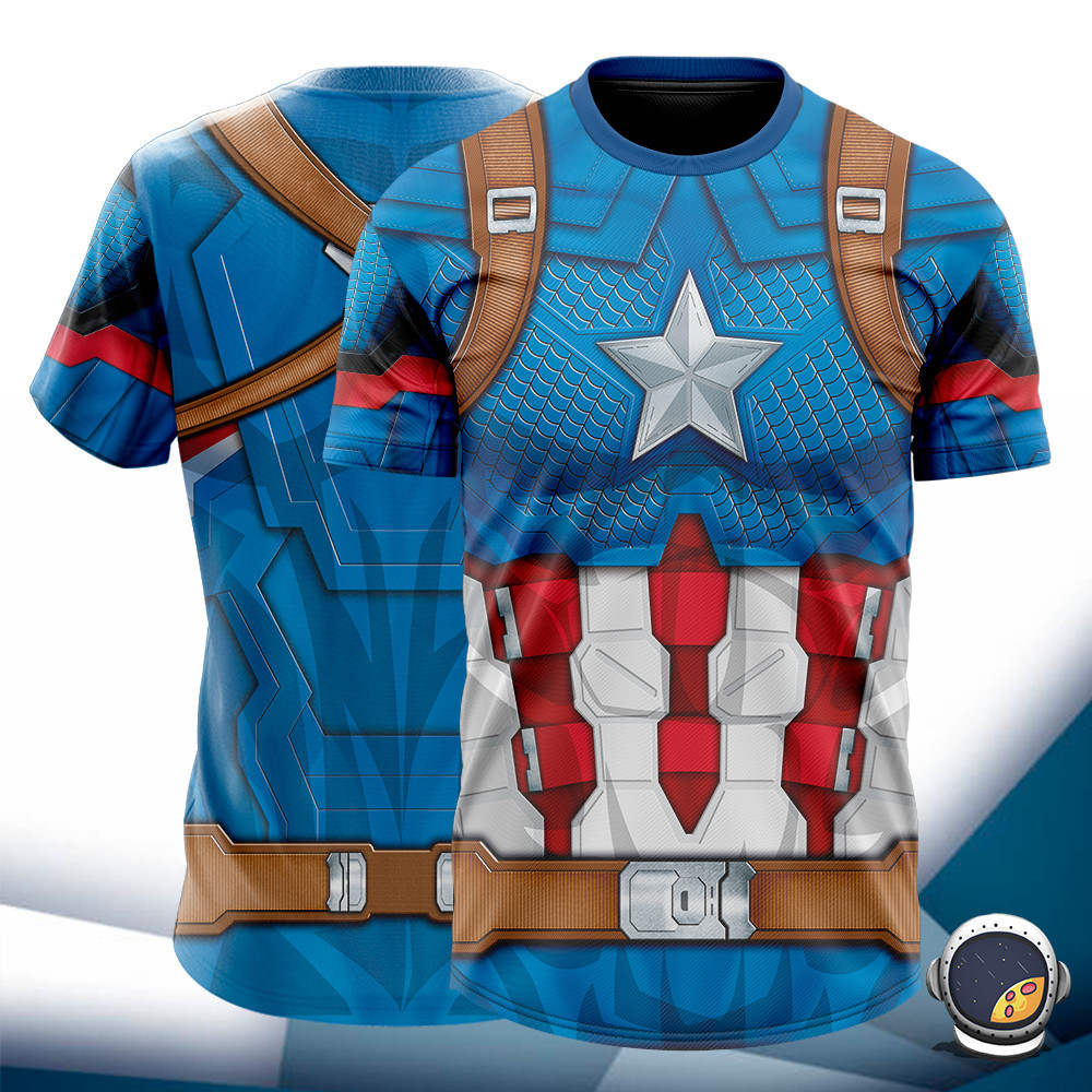 Camiseta Capitão América Marvel Cosplay Fantasia 3D Unissex Adulto Babylook Infantil