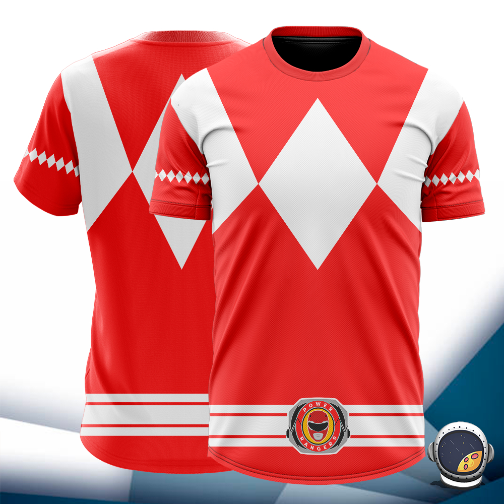Camiseta Ranger Vermelho Power Ranger Cosplay Fantasia 3D Unissex Adulto Babylook Infantil