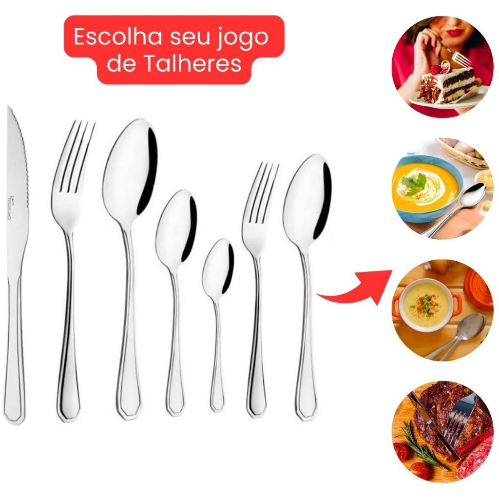 Aparelho de Jantar 42 Peças 18 Prato Vidro 6 Fundos + 6 Raso + 6 Sobremesa Saturno+ 6 Copos + 18 Talheres Inox Oriente Original Garfo Faca Colher Almoço Jogo