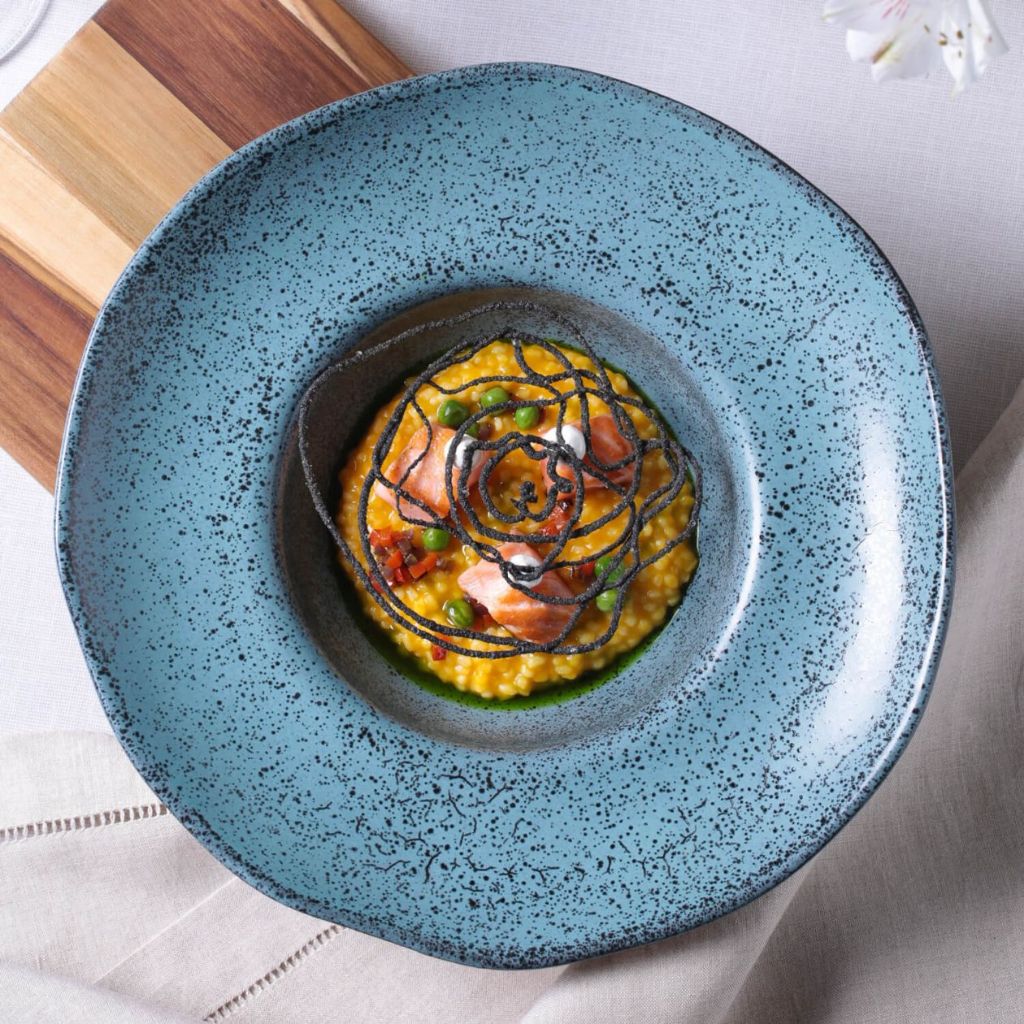 Prato de Entrada Unitário Tipo Chapéu Para Massas e Cremes 450ml 28cm Orgânico Night Sky Porto Brasil em Stoneware