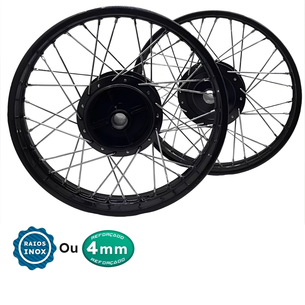 Par Roda Aro Cubo Preto Biz 100 Biz 110 Biz 125 Raios 4mm ou Inox Montada