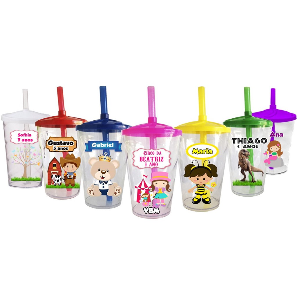 Kit C/ 40 Copos Twister Shake Personalizado 400ml C/Tampa e Canudo Lembrancinha de Aniversário Infantil
