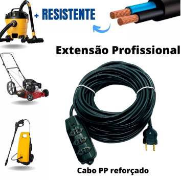 Extensão Elétrica de 10, 20 e 30 metros Reforçada Cabo PP 2 Vias X 2,5mm² Profissional