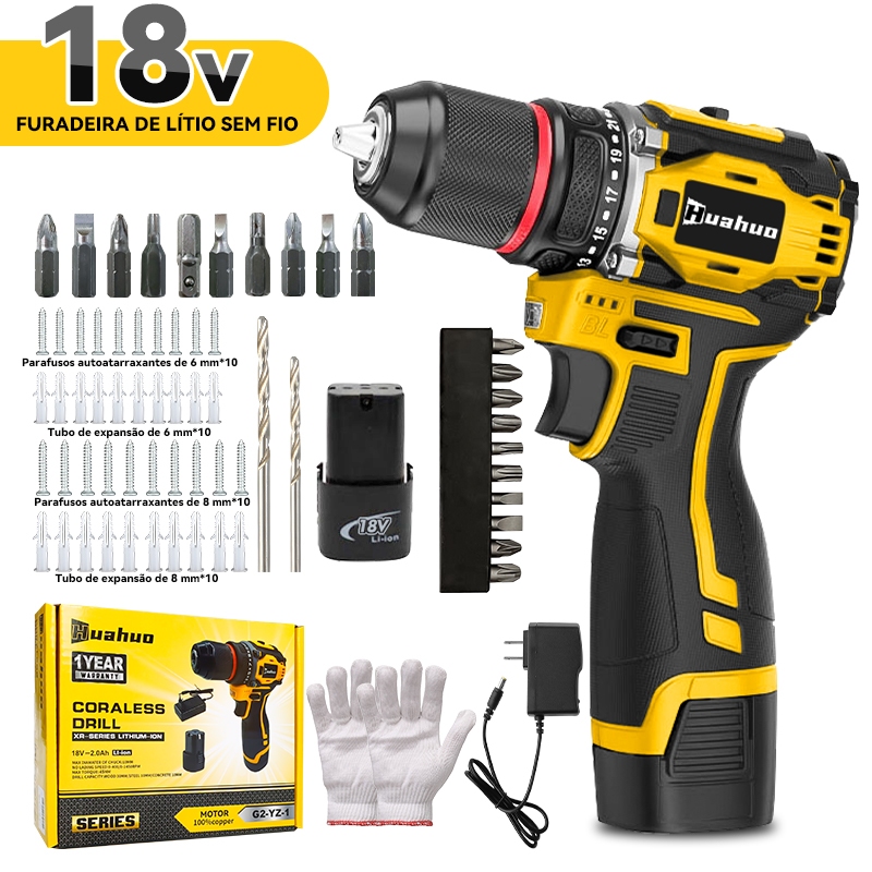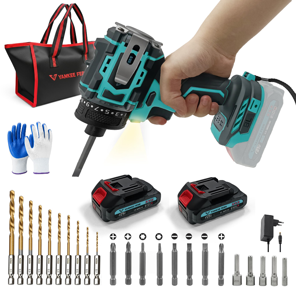 Furadeira elétrica parafusadeira Furadeira De Impacto 21V 2 Baterias ferramentas martelete rompedor