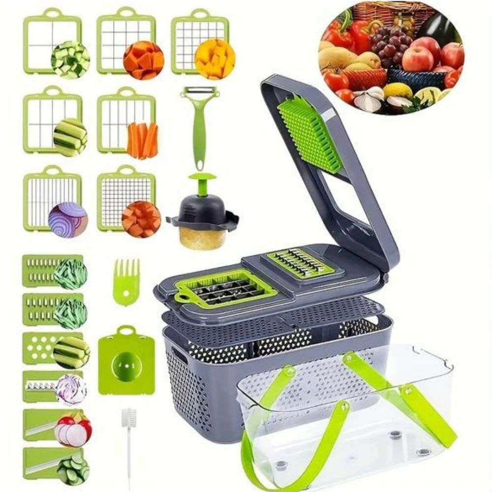 Cortador de Legumes Multifuncional 16 Peças Multiuso Ralador Picador Fatiador Processador Alimento