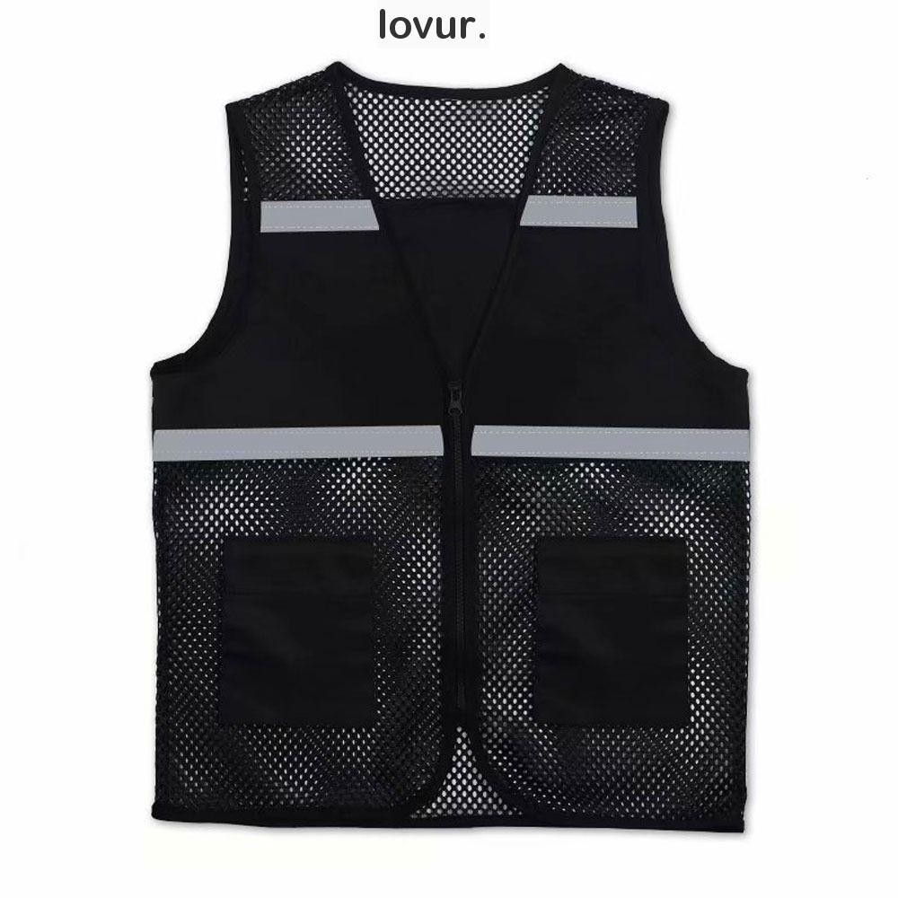 Colete De Segurança LOVUR , Tecido Respirável Preto Com Tiras Reflexivas , Jogging With Zipper Vest Spandex Malha De Construção De Metrô Ferroviário