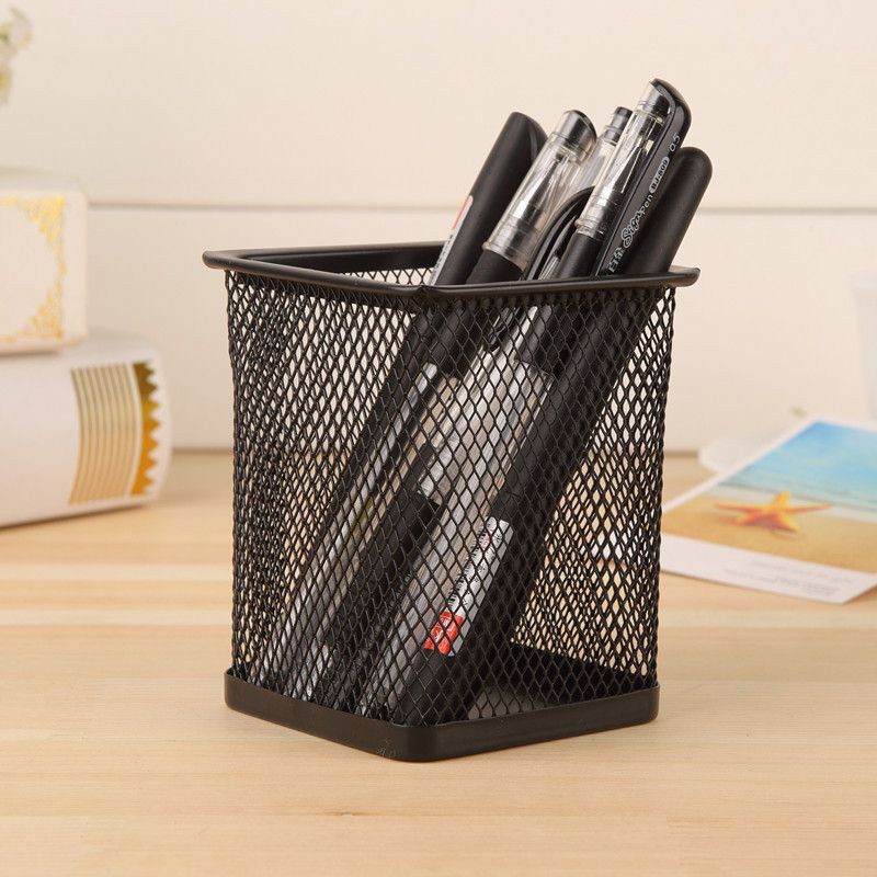 kit 6 Porta Caneta Aramado Metal Quadrado Organizador De Mesa Preto 9,5cm x 8cm Papelaria/Organizador de mesa