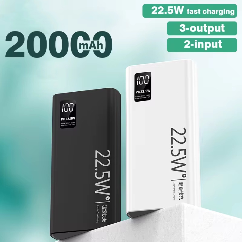Carregador Portátil 20000mah grande capacidade power bank usb c 22.5w rápido portátil bateria para iphone samsung xiaomi