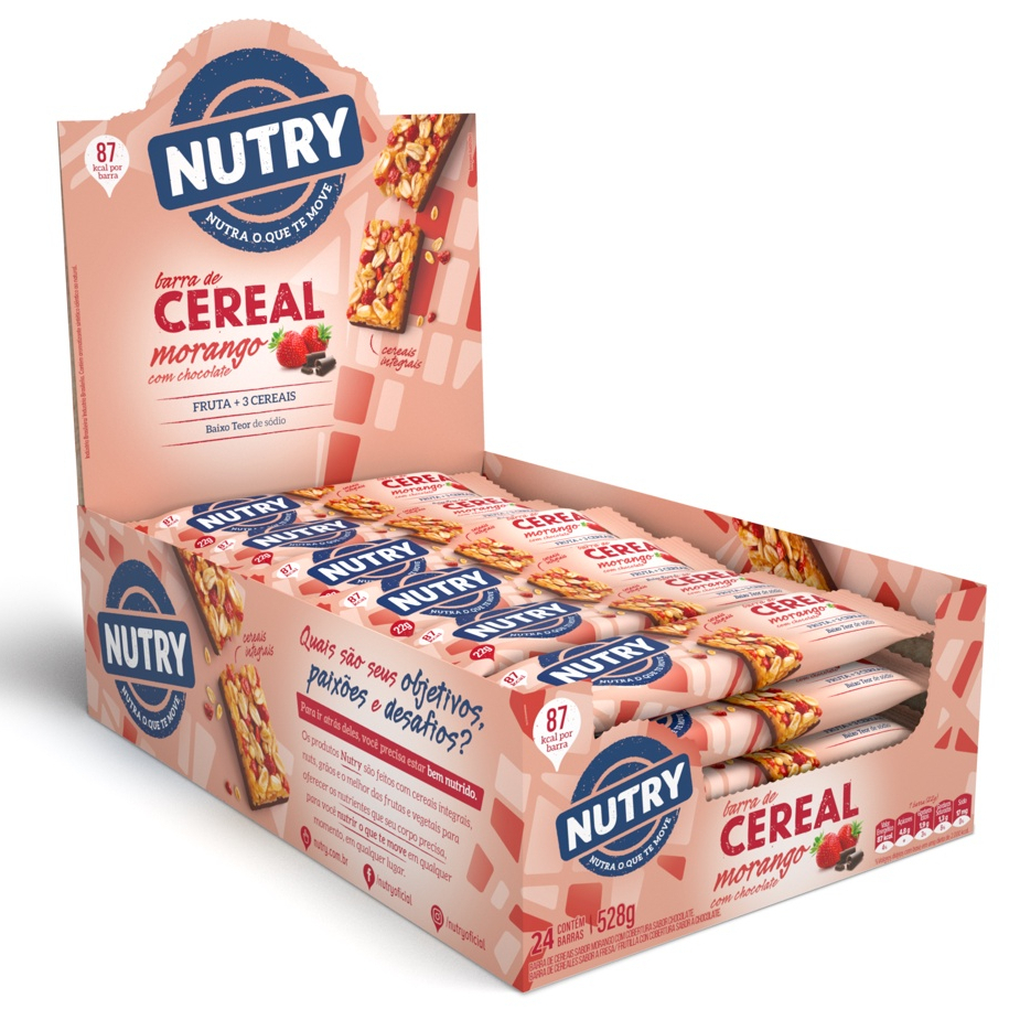 Barra De Cereal Sabor Morango Com Chocolate Caixa C/ 24 Unidades - Nutry