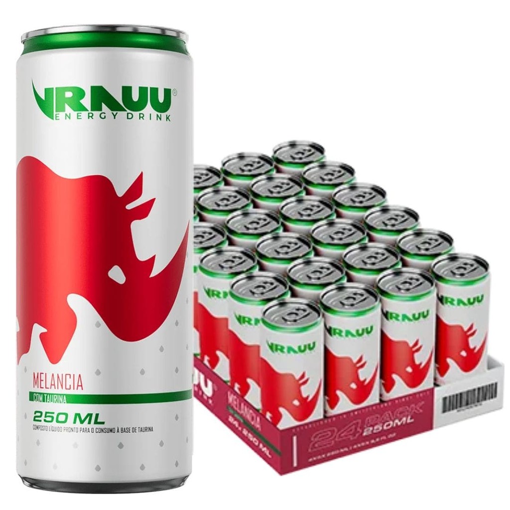 Caixa 24un Energético Vrauu Energy Drink Lata 250ml Melancia Watermelon Importado da Áustria Red Kit Pack Fardo