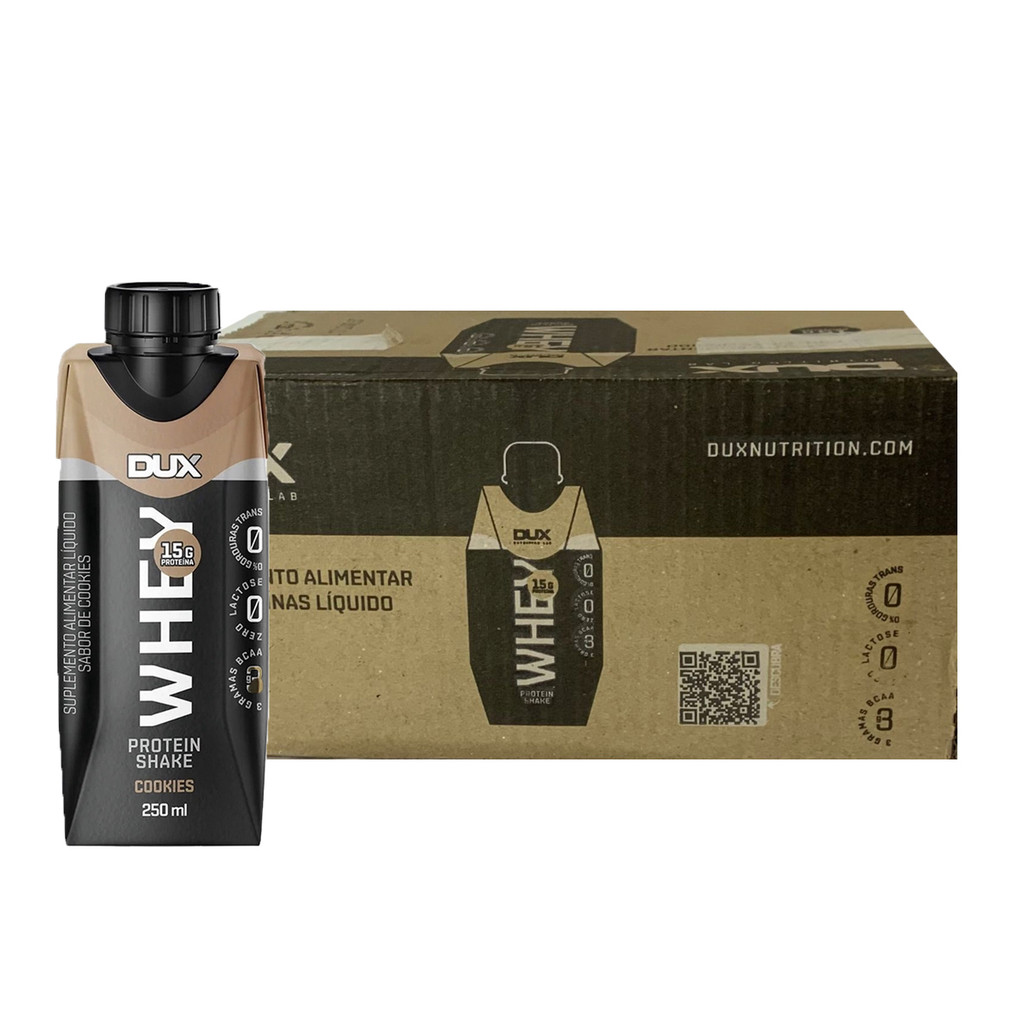 Shake Whey Protein Sabor Cookies Caixa 24 Unidades De 250ml Dux Nutrition