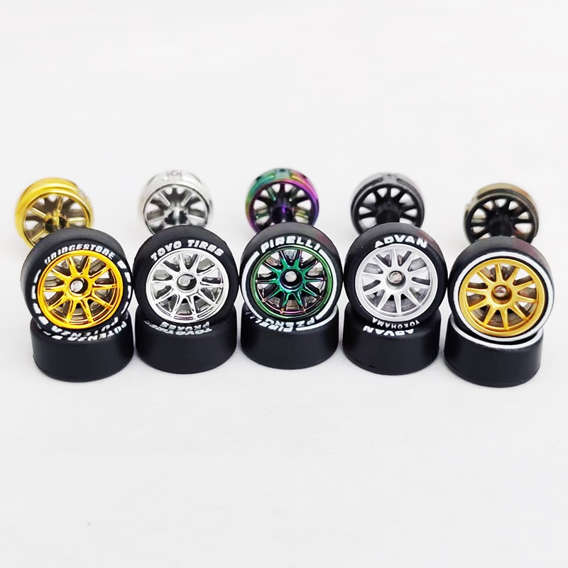 Rodas Modelo De Carro De Liga 1/64 De 11.2 Mm Com Pneus De Borracha Removíveis CE28 10 Raios Para Modelos 1 : 64 Hot Whe