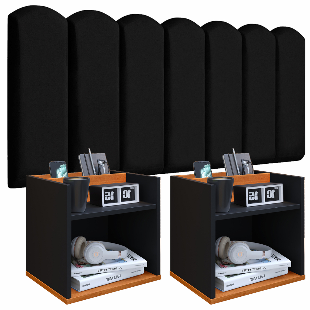 Conjunto 2 Mesa De Cabeceira E Cabeceira Estofada Cama Casal Cantinho de Cama Mesa de apoio Cama Preto cinamomo
