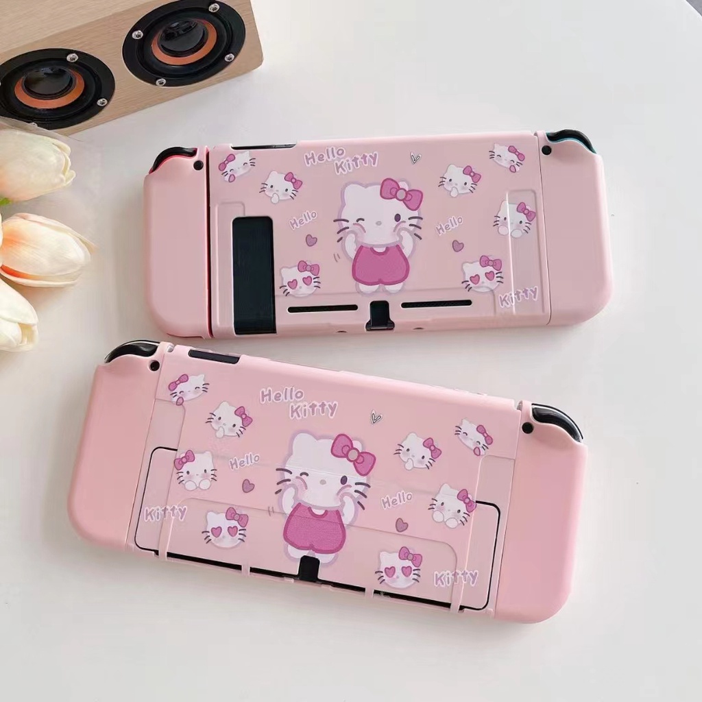 Interruptor OLED Capa protetora Suporte facial Hello Kitty TPU Capa protetora pintada Alinhamento preciso do furo Embalagem individual Nintendo Game Console Resistente a choques