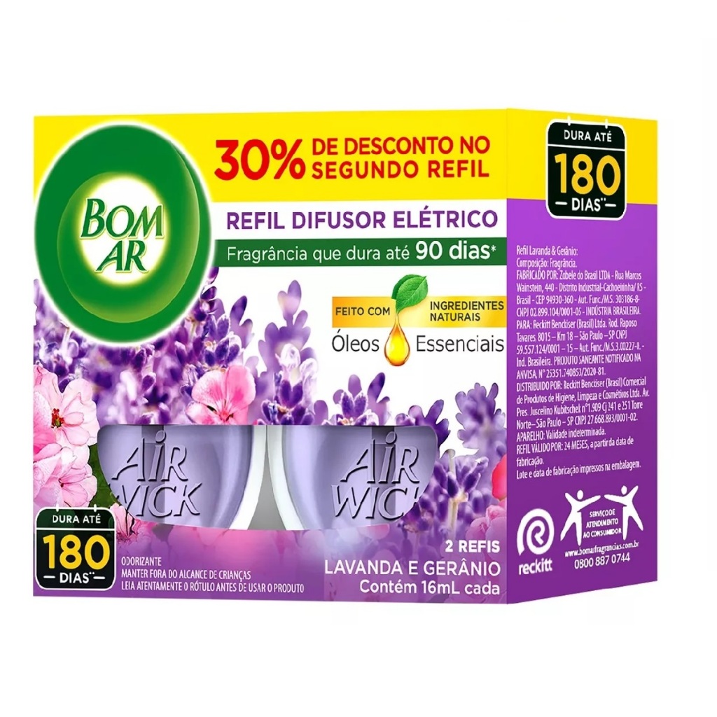 Bom Ar Difusor Elétrico Refil Lavanda 16ml Cada (Kit 2 unidades)