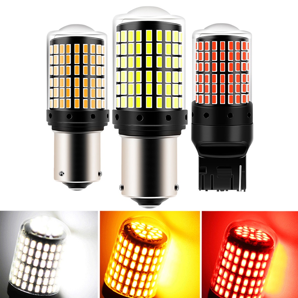 1pç Lâmpada De Sinalização De Giro Automático Luzes De Freio 1156 BA15S P21W BAU15S PY21W T20 740 W21W 157 Lâmpadas led 144 smd CanBus Sem Derro Branco Amarelo Vermelho 12V 24V