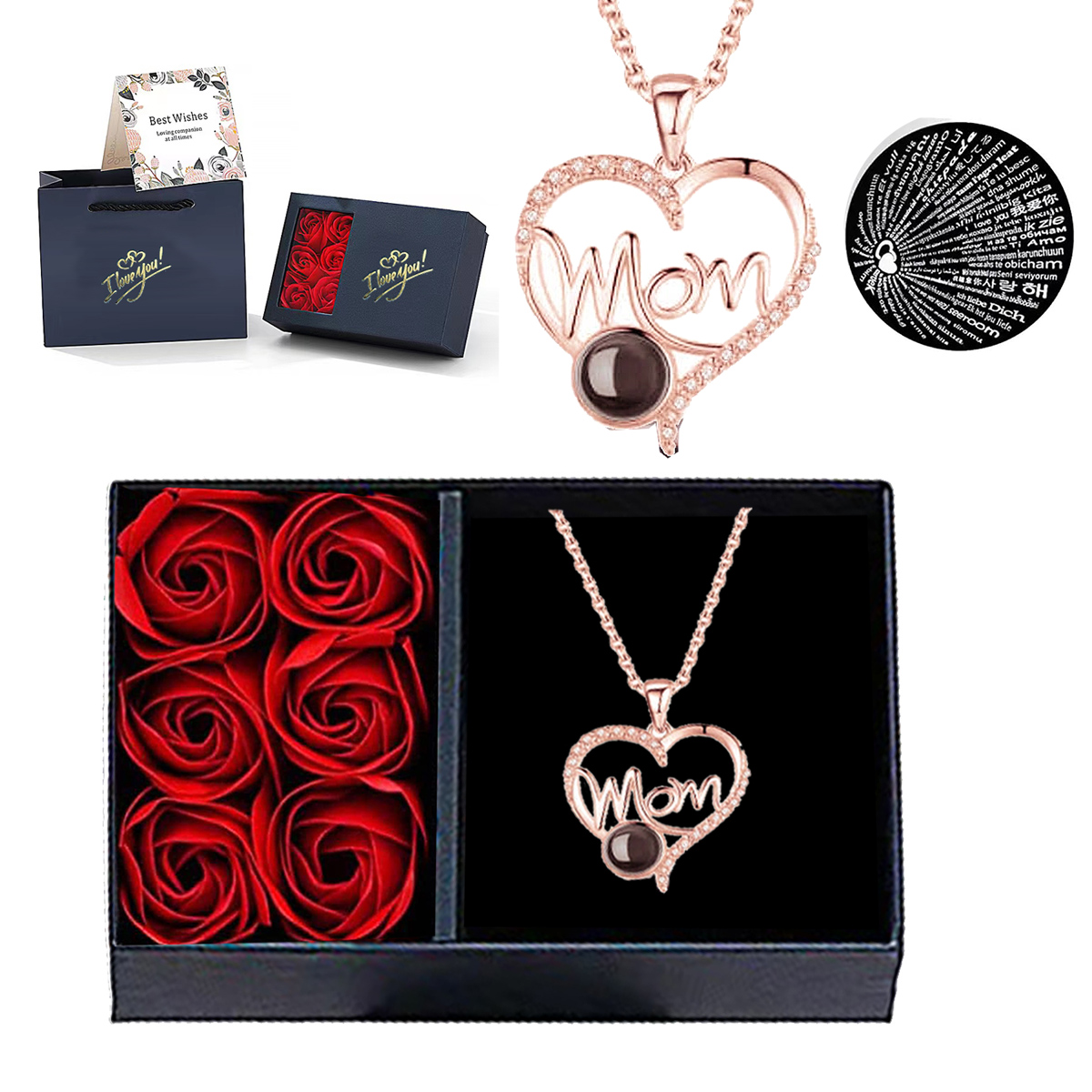 Colar do Amor e Caixa de Presentes Rosa, 100 Idiomas Colar I Love You, Caixa de Presentes Requintada para Namorada Esposa Aniversário de Aniversário para o Dia dos Namorados do Dia das Mães