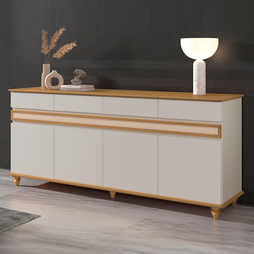 Aparador Buffet 4 Portas 4 Gavetas com Pés em Madeira Maciça Dublin Cor:Off White e Cedro