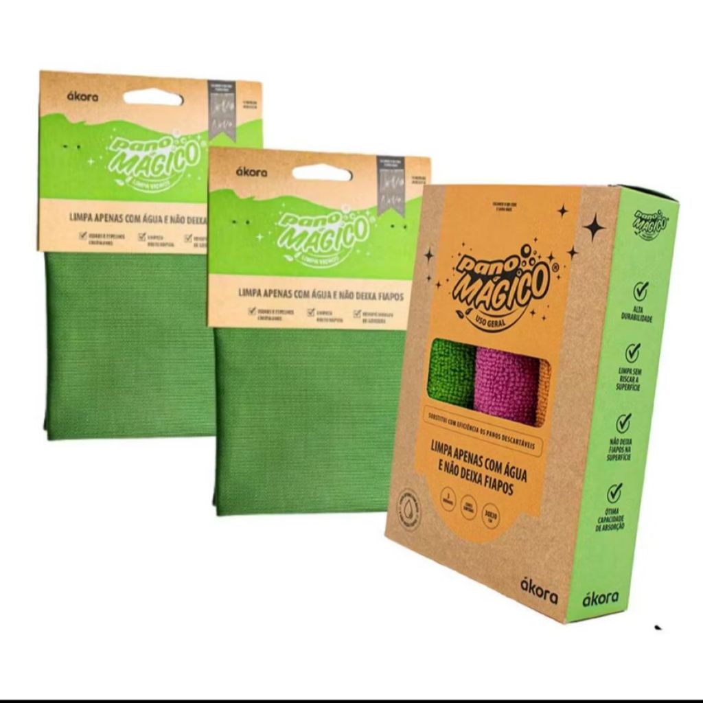 Kit Panos de Limpeza Ákora Ecomais 2 Limpa Pisos G 1 Louças e Cristais 1 Vidros e Inox 3 Pano Mágico